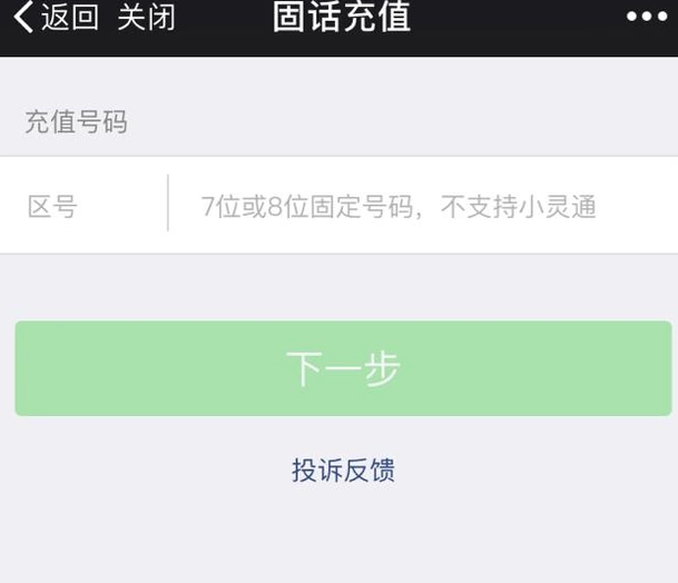 5.进入固话充值页面,手动输入要充值的电话号码,点击“下一步”。