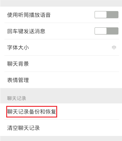 4.选择“聊天记录的备份和恢复”,如下图所示: