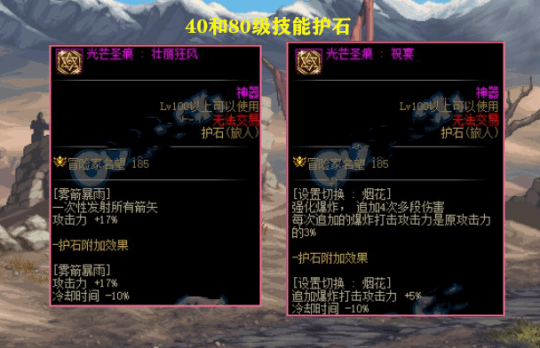但是石头保护的第三个位置主要纠结在40级技能& ldquo雾箭暴雨& rdquo还有80级技能& ldquo烟花& rdquo。40和80技能各有优势。在佩戴方面,完全看玩家自己的喜好。