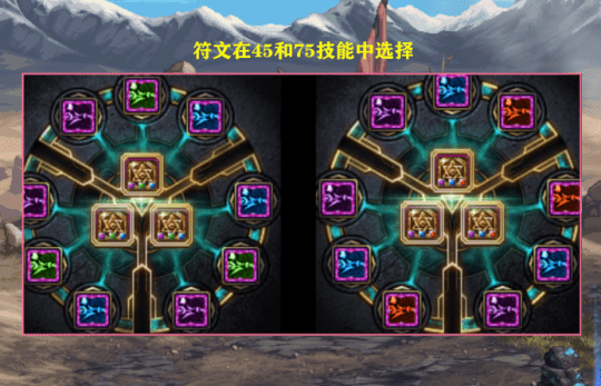 对于符文,在45级技能和75级技能之间选择。当然,如果你走专精45,就必须选择45级符文,如果你走专精75,就必须选择75级技能符文。