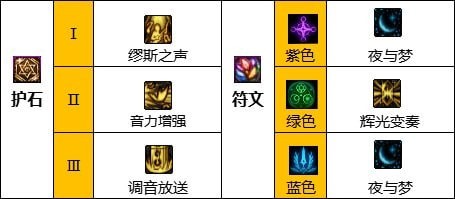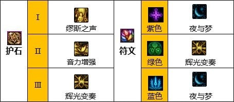 符文方面,因为现在的版本有很多范围遮罩,也可以考虑到紫色恢复的上限,所以可以根据个人喜好把黄色换成紫色。
