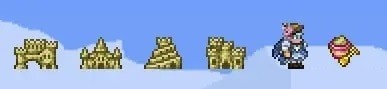 雪块、冰雪块、魔剑、丛林蜥蜴砖、大理石块、花岗岩块、砂岩块。