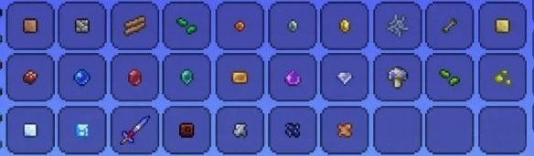 土块、石头、木块、草籽、铜币、银币、金币、蜘蛛网、骨头、沙块、