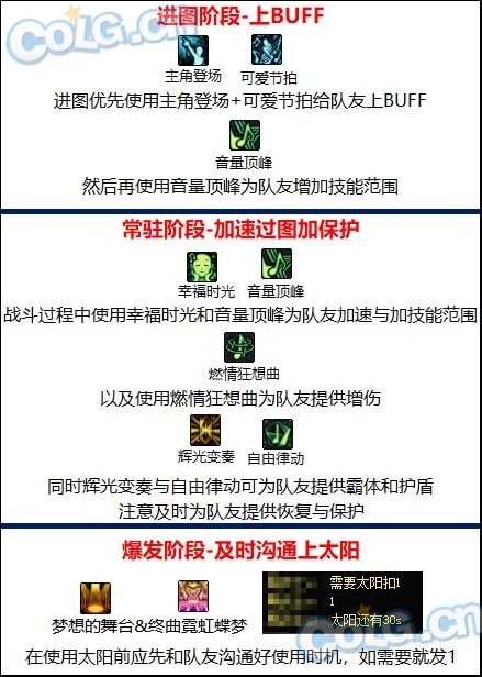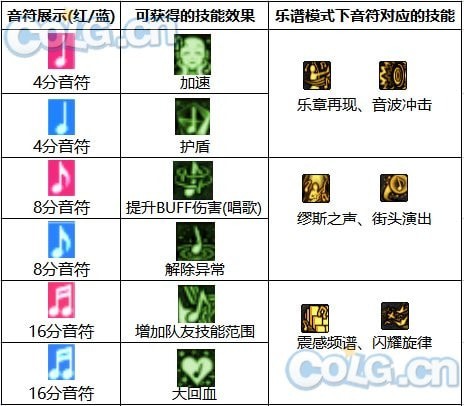 通过释放乐谱,输入相应的音符,可以激活技能,为队友提供加速、回血、技能范围提升等多种属性加成。