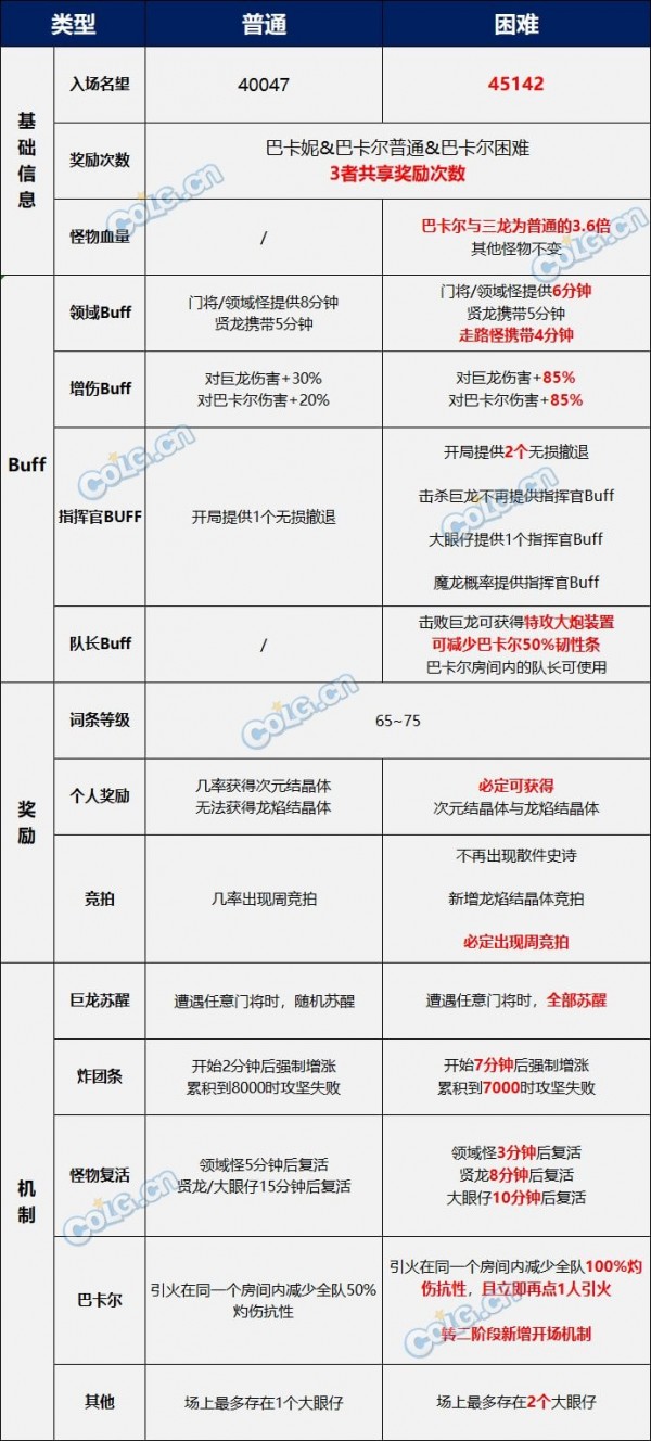 在难度模式下,除了巴卡尔的新机制,其他怪物机制和普通难度一样。