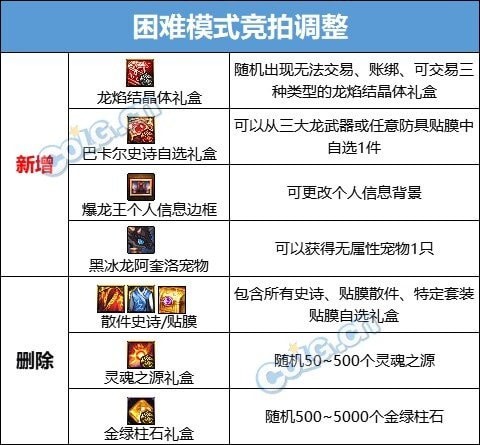 拍卖奖励删除了部分道具,不再有史诗和贴膜的碎片。