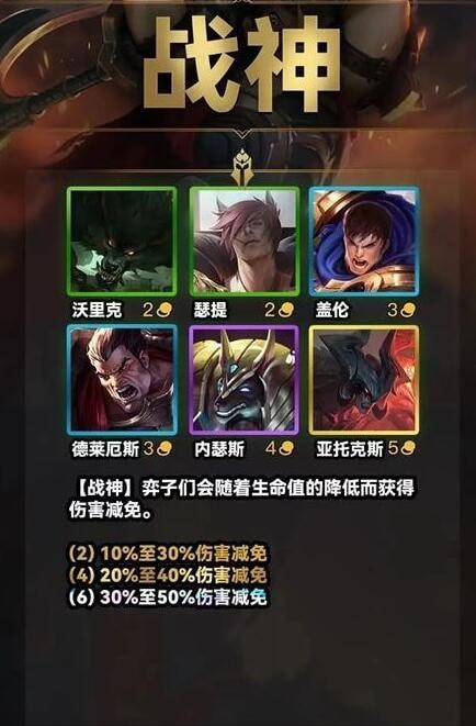 羁绊效应;【战神】棋手生命值降低会获得伤害减免。