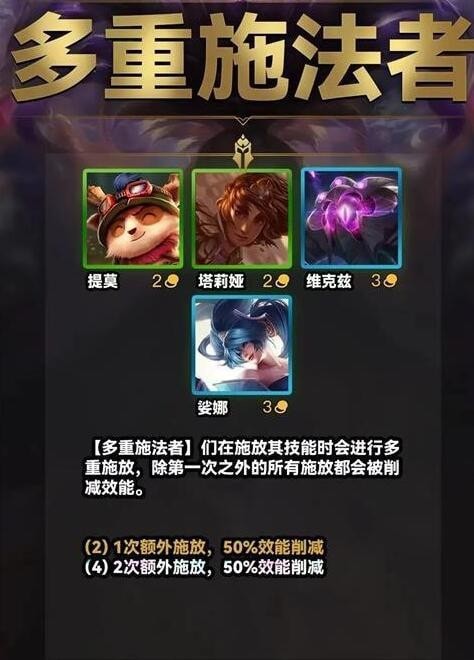 羁绊效果:【多施法者】在施放技能的时候会进行多次施法,除了第一次的所有施法效果都会降低。