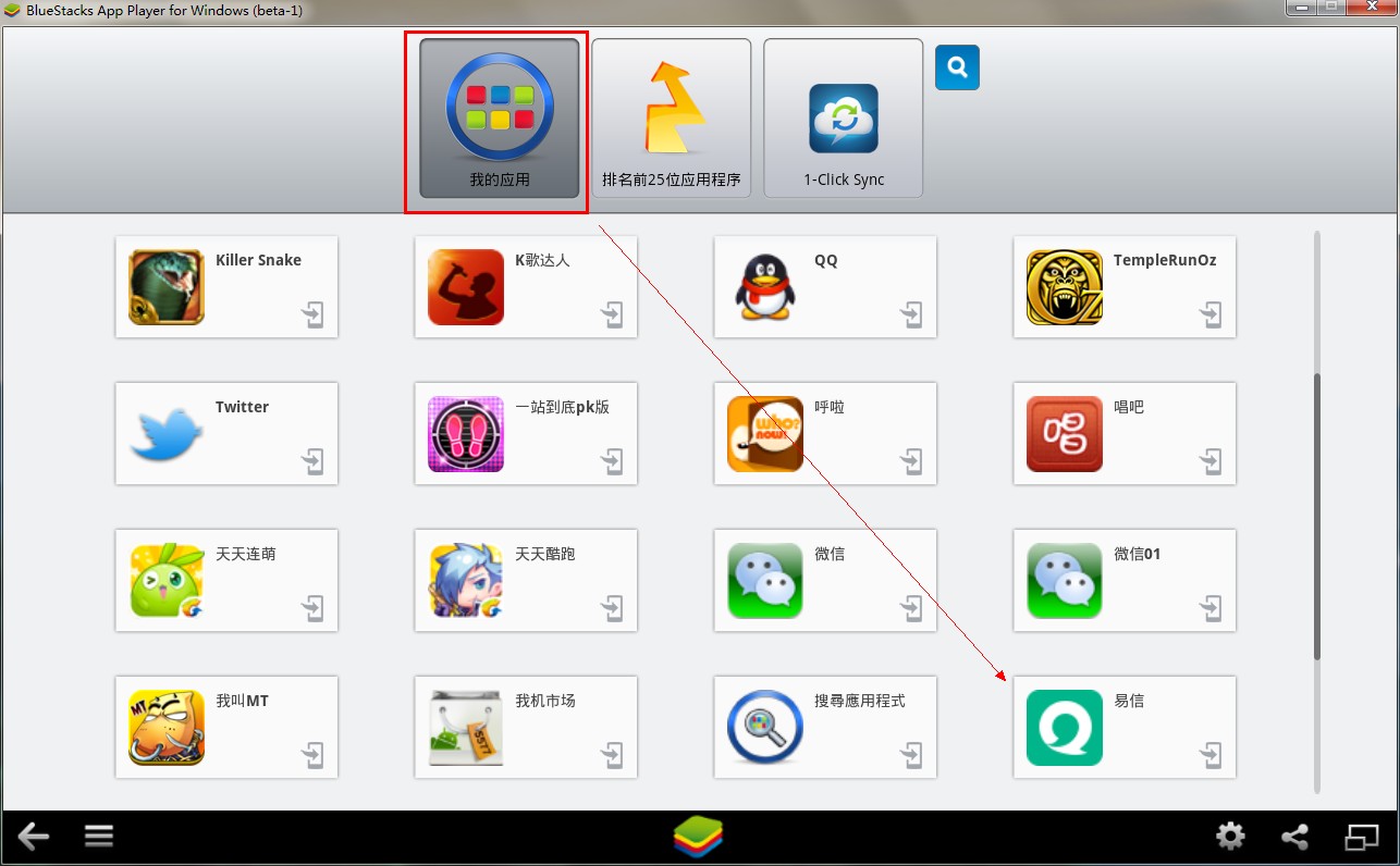很简单,下载易信apk文件,选择在Android模拟器中打开,就会自动安装。安装完成后,在Android模拟器的“我的应用程序”中找到易信