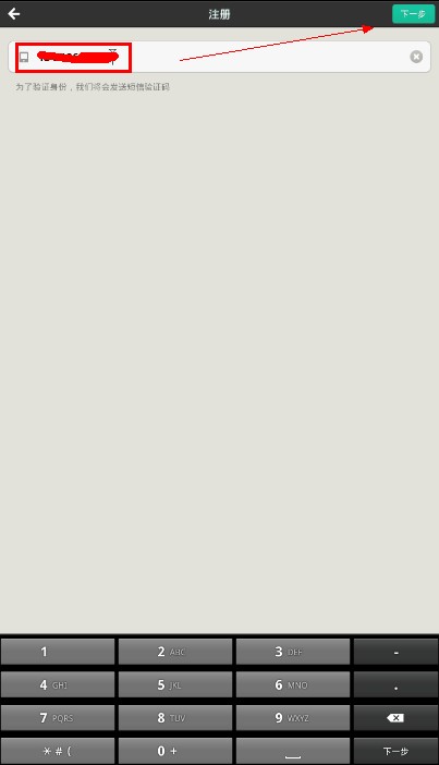 输入电话号码后,点击“下一步”