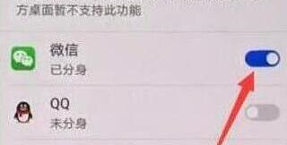 第四步:选择需要克隆的应用程序,以微信为例,点击打开微信右侧的开关,会显示已克隆。