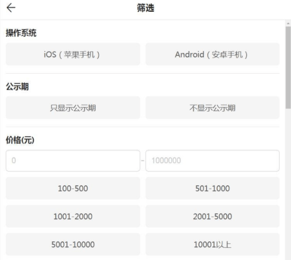 5.我们也可以点击右上角的过滤按钮,过滤我们可以接受的价格范围;