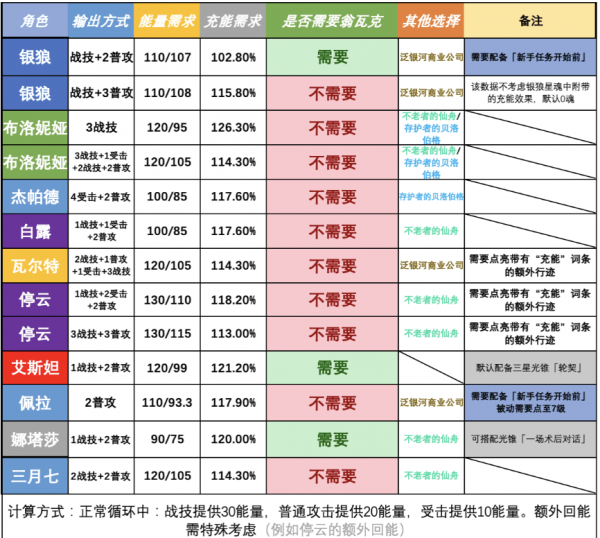 默认所有辅助角色的链接绳主入口都是满能量的,最高19.4%。毕竟需要佩戴Onwak的角色一般都会选择充电绳。然后通过计算并结合上表,我们可以知道: