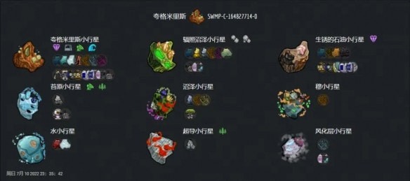 金,铁,钴,铝,硫磺,火山,小火山,清水,盐水,污水,冷蒸*3,热蒸,氯气,天然气*2,