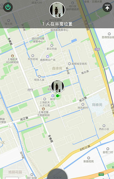 3.然后我们进入共享位置界面,个人的当前位置会显示在屏幕上。因为只有一个人共享,所以显示当前位置。当你发起共享位置时,你发起的“共享位置”也会显示在对方的微信对话框中,只要他点进去。