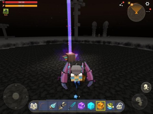 当一切准备就绪后,玩家可以乘坐宇宙飞船前往星,并在古代巨人图腾的前、后、左、右放置四个不同的方块。其中,蓝色钻石块放在图腾正面,紫色荧光石放在图腾背面,孔雀石和星铜石分别放在两侧。