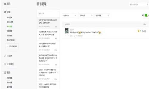 同时,微信公众平台后台和前台进行了改版,整体风格完全扁平化,并做了一些面板调整。其中后台消息管理功能变化最大,可以在同一个界面集中管理所有文章消息,可以进行回复、置顶、删除等操作。