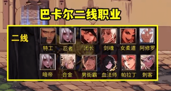 有12种职业属于第二等级,它们是& ldquo特工、忍者、上校、剑灵、女柔道、阿修罗、暗皇、合金战士、男街霸、血法、圣骑士、刺客& rdquo,阿修罗和剑魂到了二线,有点出人意料。