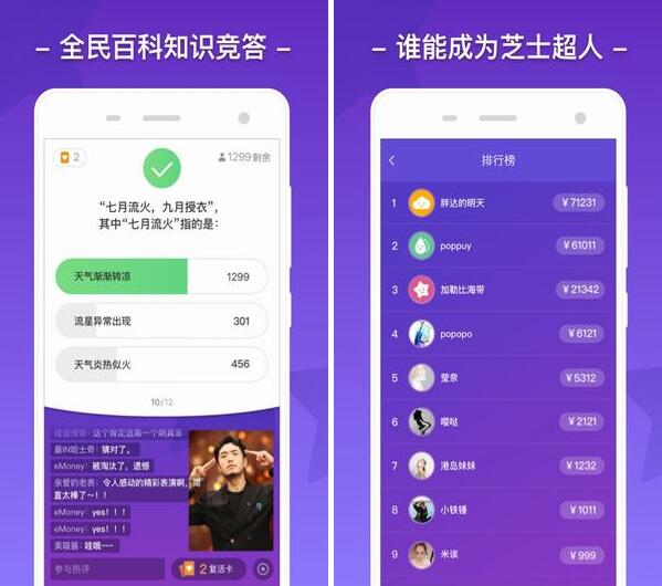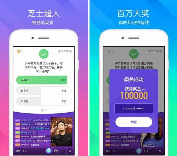 全民参与、有奖问答游戏映客直播答题APP火热上线。回答问题赢现金!