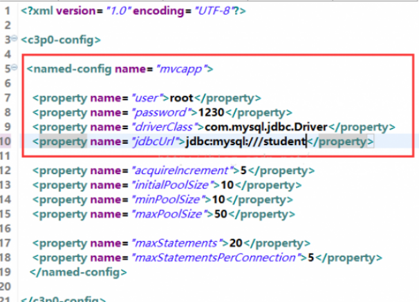5.修改连接数据库配置文件,其路径在/src/c3p0-config.xml