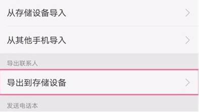 步骤2:单击导入/导出联系人— 导出到存储设置。