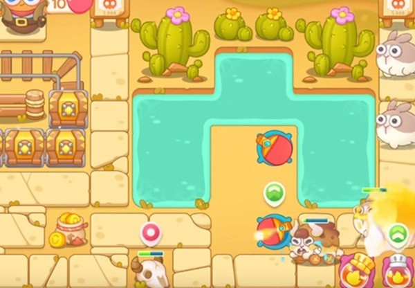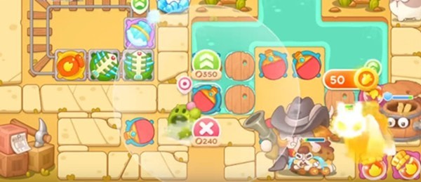 清除障碍后,要在空的位置放置一定数量的炮塔,锁定兔子进行攻击。
