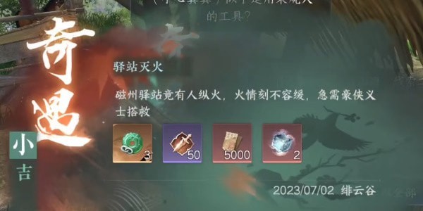 1.首先需要来到杭州的所在地——磁州驿站(429991)。当我们来到驿站,我们将触发冒险任务。我们会把火扑灭,然后我们可以拿起武器和山海。