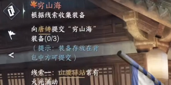 2.捡了穷山海就有线索了。我们需要回到汴京找到铁匠唐竹。对话结束后,我们需要开始收集材料。