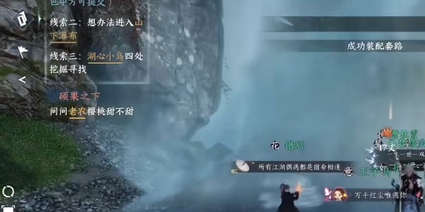 3.根据线索,我们需要来到瀑布。我们用冰掌破水,然后可以进入瀑布打开宝箱。