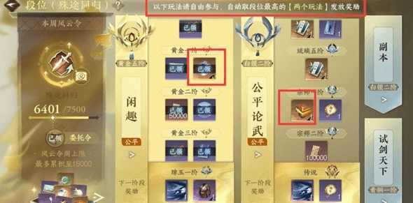 以上奖励可获得两次,共可获得10个黄金方法。从天下休闲、武侠、副本、试剑位中选最高的两个!
