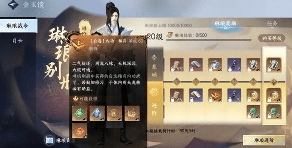 达到一级金,三级玉,五级玉就可以获得一个金色内功!