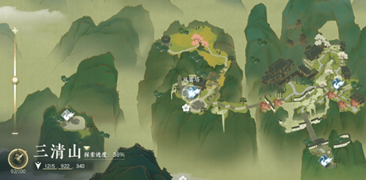 1.首先需要来到三清山(1051,846)的位置,需要从这个位置直接跳崖。