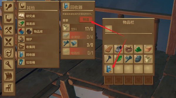 2.然后用8个塑料,4个金属锭,1个电路板做回收器。