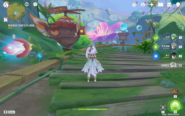5、打开宝箱,在小水滴的帮助下,我们可以启动飞行汽车(有宝箱可以完成挑战,但是不做也可以)