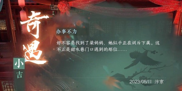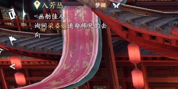 1.我们直接在任务树中点击梦回,任务就会变成一个新任务。需要找梁夫人问一下(任务位置没变);