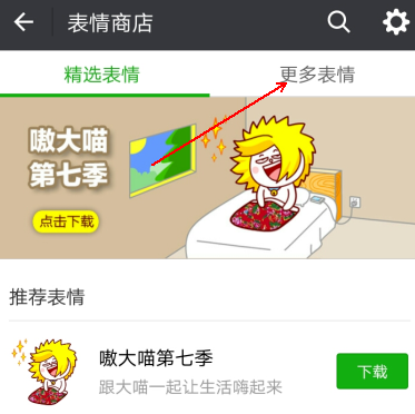 2.进入“表情商店”,比如选择“更多表情”。或者你可以直接在顶部搜索你想要的表情!
