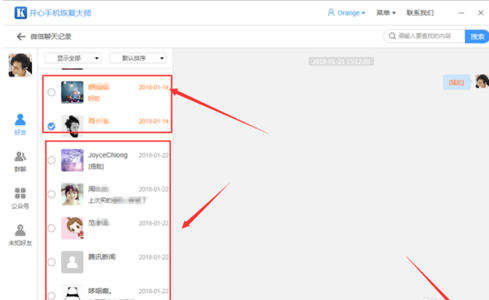 7.在kx手机恢复大师的帮助下,我们可以找回误删的微信好友,微信通讯录只能恢复到电脑上,可以悄悄加回去。