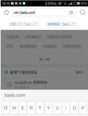 打开迅雷手机客户端,输入pan.baidu.com,登录百度云账号。