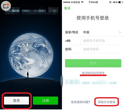 1.打开微信,点击“登录”,直接输入注册微信绑定的手机号,输入密码或获取动态密码即可登录,如下图所示: