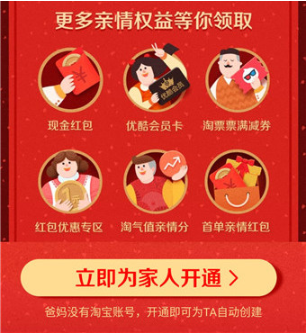 淘宝还针对家庭账户推出了多种服务。比如,家庭号会针对特定人群筛选出专属优质优惠商品、现金红包、淘宝门票折扣券、双倍淘气积分等权益。