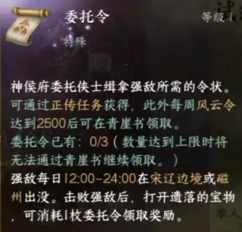 2.每周玩家经验值达到2500后可以在清雅树领取委托单。