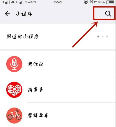 4.输入“小程序”,点击右上角的“搜索”标志。