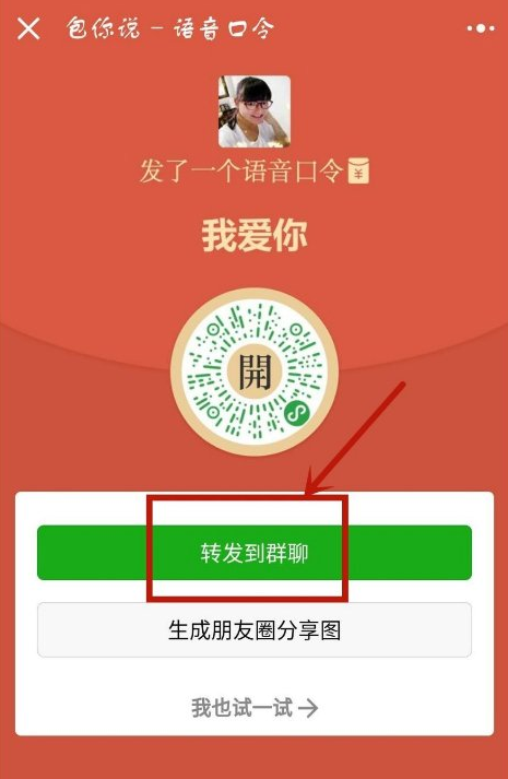 10.点击“转发群聊”,就可以发送给朋友或者微信群了。朋友点进去说密码,你就能拿到你的密码红包。
