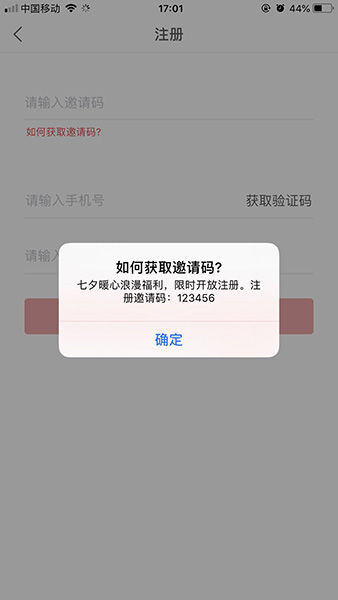 3. 输入邀请码的栏位有红色字体。点击获取官方邀请码。这是有时间限制的。