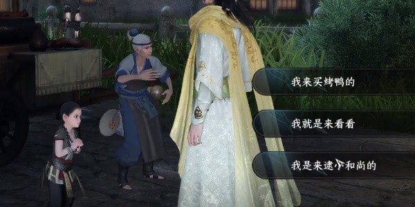 2.接到任务后,我们和旁边的小和尚对话。对话期间,会有选项。第一次我们选择抓小和尚,第二次选择给我一半。