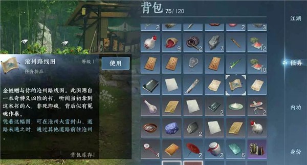 2.背包里& mdash& mdash在任务中使用沧州路线图进入沧州。