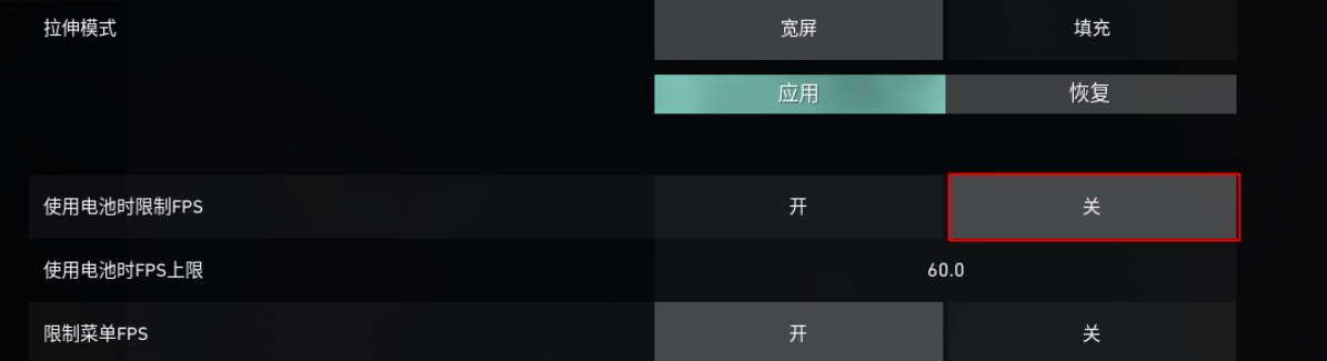 2、使用电池时限制FPS:在没有充电压力的情况下,最好选择关闭。