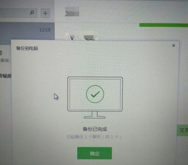 7.单击确定完成。电脑版微信和手机微信都会提示备份完成。