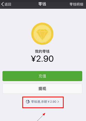 4.进入零钱界面,点击下方的零钱按钮充值提现,如下图。