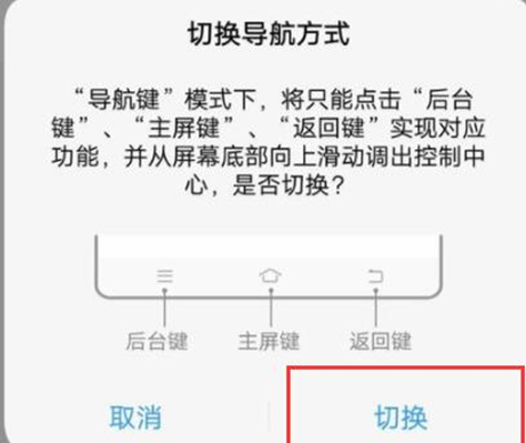 第三步:在导航模式栏中,点击【导航键】,底部会出现提示框,点击【切换】。